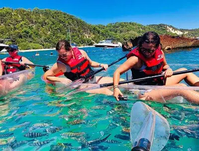 Adventure on Moreton Island is calling! Dive into an incredible journey at Moreton Island's famous Tangalooma Wrecks, where guided snorkeling tours bring you face-to-face with turtles, dolphins, and vibrant reef fish. Experience the underwater world in our unique transparent kayaks and witness the thrilling FISH FRENZY! Get your heart racing as you zoom down massive sand dunes at 70km/h, then join our exhilarating 4WD adventure across rugged terrain to "The Desert". With pristine beaches and non-stop action, this is Queensland's ultimate family day out.